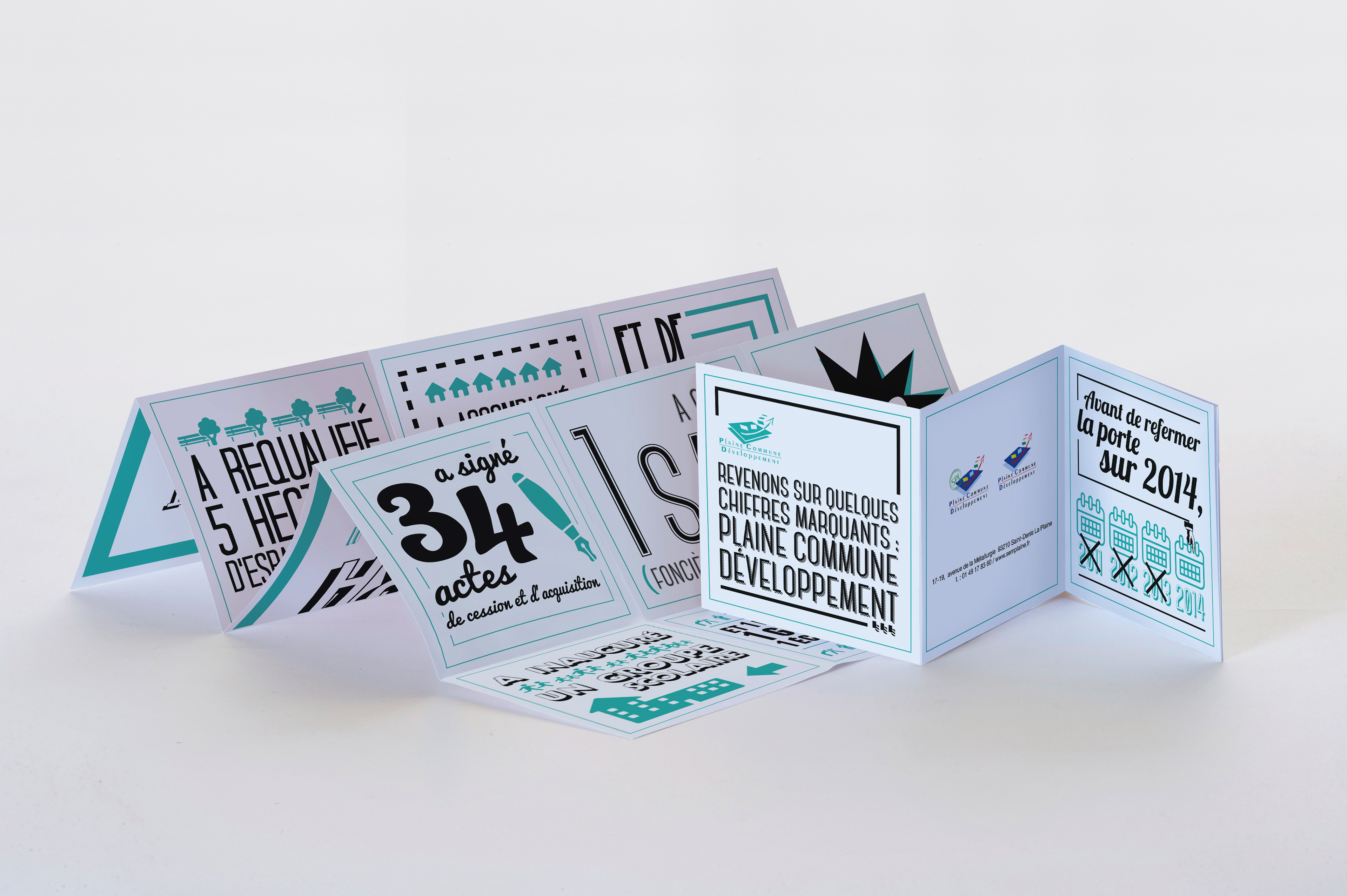 Pour les vœux 2015 de Plaine Commune Développement, l'agence s'est pliée en quatre pour réaliser une carte décalée et présenter des données chiffrées de façon percutante. ***