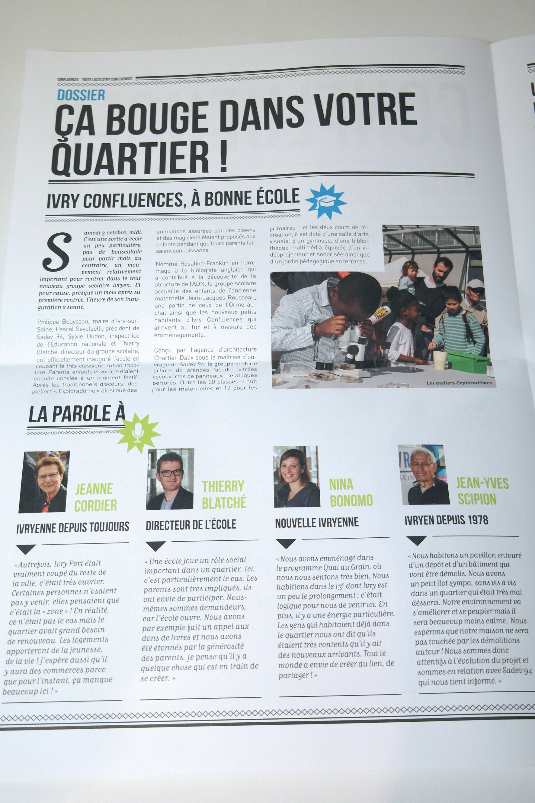 Une nouvelle maquette qui se veut plus proche de ses lecteurs pour le journal du projet Ivry Confluences. ***
