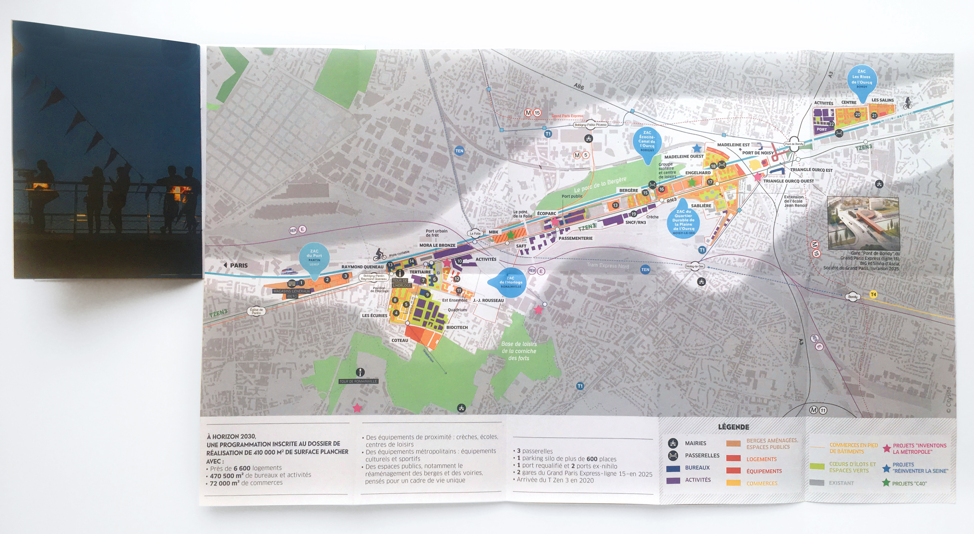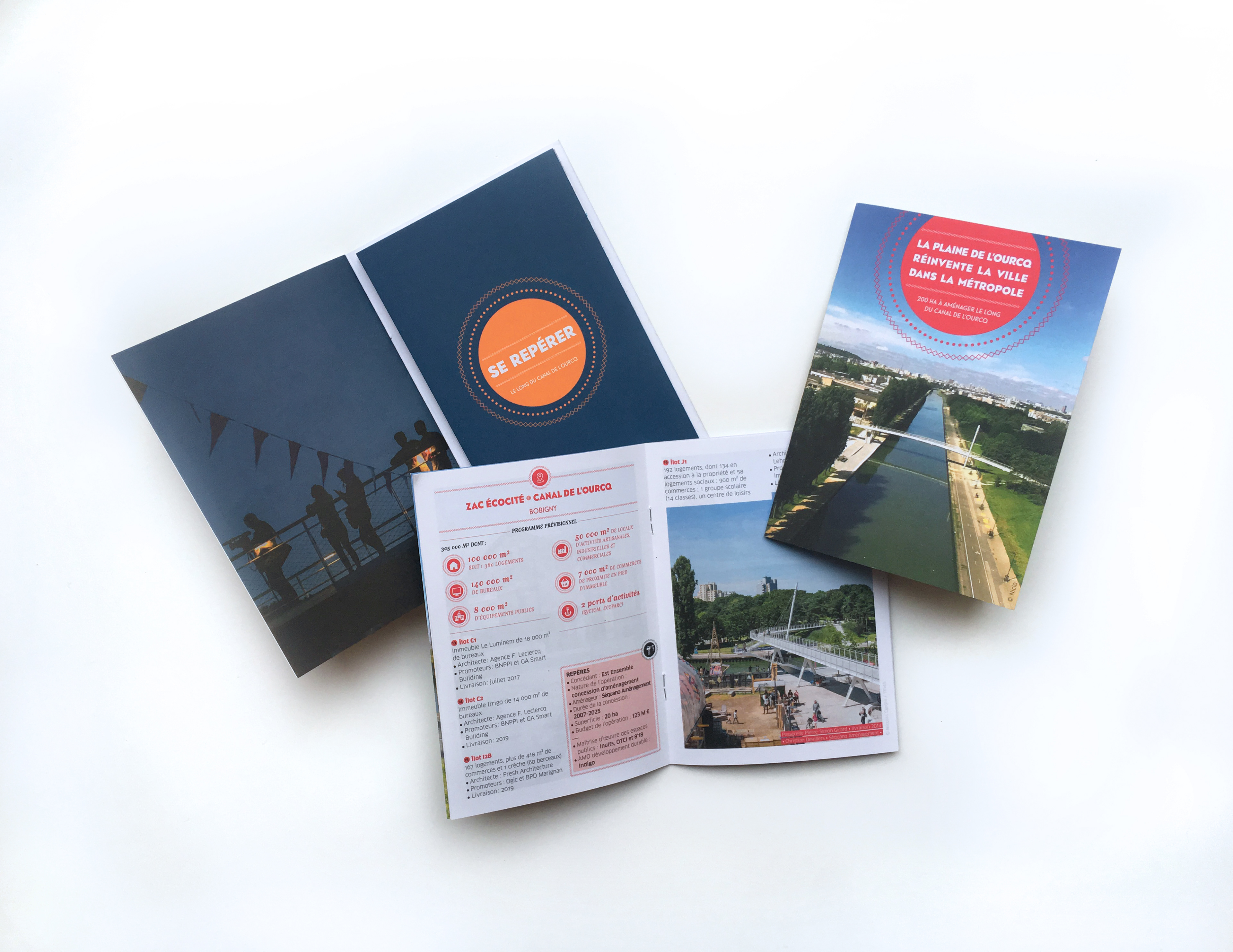 Le long du canal, la vie bat son plein ! Pour mettre en valeur les mutations urbaines autour du canal de l'Ourcq, Urban Rhapsody a conçu pour Séquano Aménagement une brochure de poche synthétisant les différentes opérations. Un plan dépliable permet de se repérer dans ce foisonnement de projets ! ***